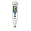 For pH measurements you need to plug in the optional Temperature Probe into the Temperature Socket. Plug in the optional pH Electrode into the pH/BNC Socket. Immerse both the Temperature Probe and the pH Electrode into the measured solution. Shake the pH Electrode to let the probe’s internal air bubble drift out from the sensing head. The top display will show the pH value and the bottom display will show the measured Temperature.